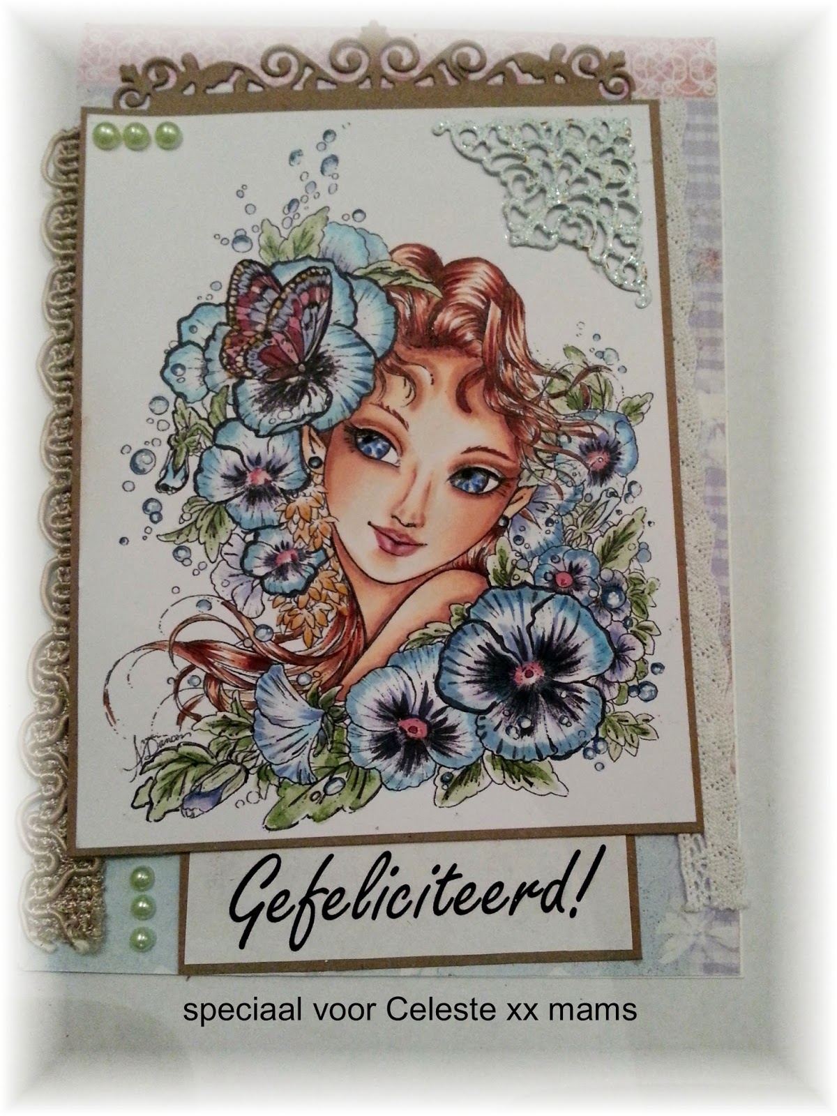 wat een mooie digi`s heeft zij , ik heb haar gekleurd met de copic markers ( ik ben op les bij Kit & clowder en doe de haar en huid klas) erg leuk om te doen deze is dan prima om te oefenen.